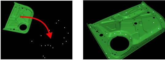 Bauteildatensatzes in einem kompletten Modell der Fertigungseinrichtung